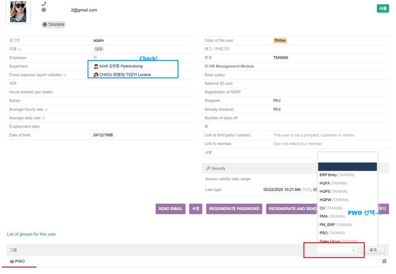 5. 작업 그룹 : 일반 사용자는 PWO 사용 할 것 (PSO는 권한이 많아서 주의)