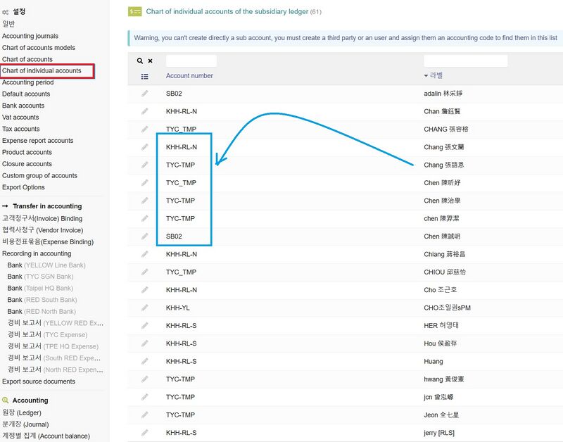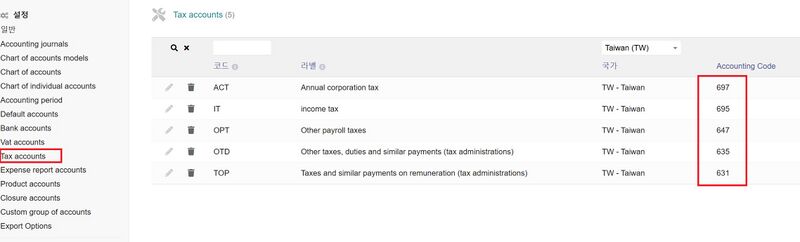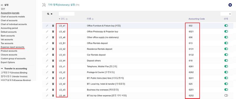 • 참고: 일부 태그는 회계 계정(이름)과 다르게 설정된 경우 있음, 임시 활용 때문임.