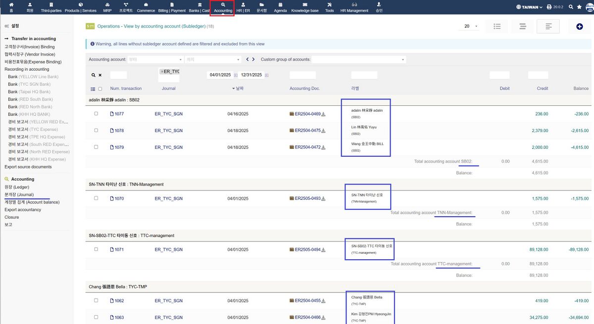 Sub-ledger에서 멤버의 Accouting Code를 참조하여, 별도로 구분함