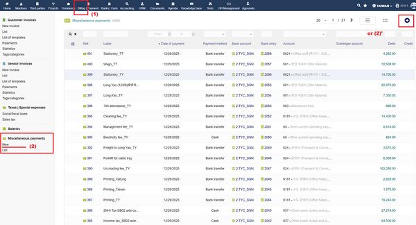 ERP 은행계좌에 기록하는 것은 증빙이 없는 경우를 포함하므로, 기록하는 경우가 엄격하게 관리된다.
