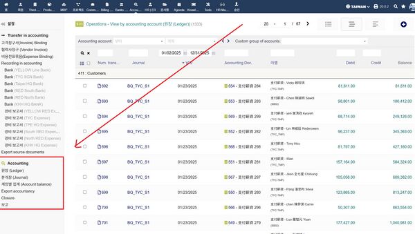 - 원래는 원장 메뉴가 분개장(Journal) 화면을 불러서 사용하는 것임