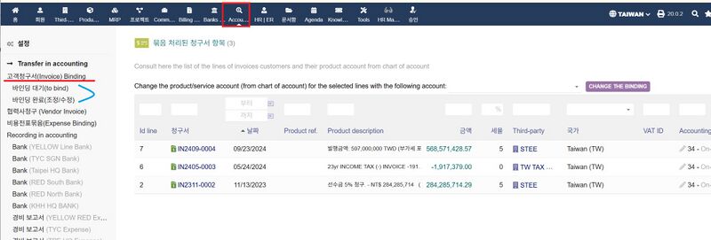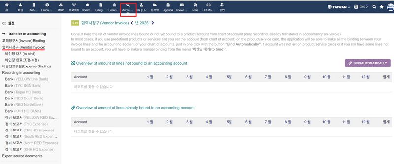 Accounting 메뉴