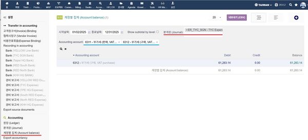 - 신호 프로젝트 선택 후 - 부가세 항목 조회 한 경우 6311: 판매 부가세 6312: 구매 부가세