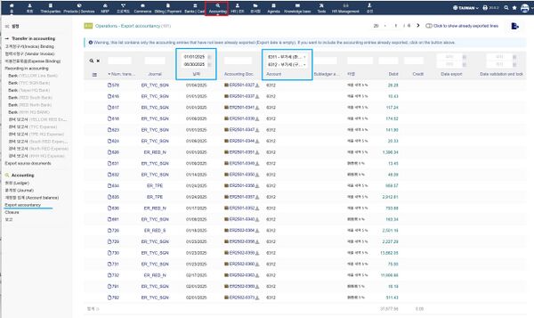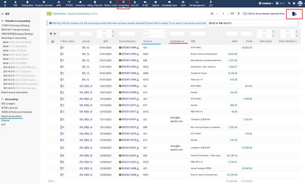 - Export accountancy - 회계 내역 추출