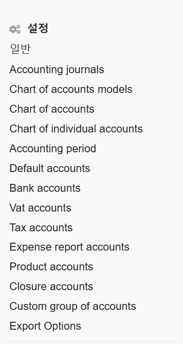 • Chart of accounts model - 회계 모델 종류 (원래는 여러개가 있는데, 현재 것에서는 사용하는 것만 남겨 놓음)